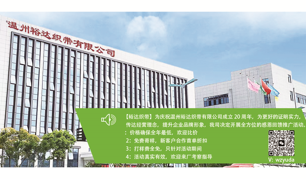 經(jīng)驗(yàn)優(yōu)勢(shì) 裕達(dá)從事織帶產(chǎn)品已有20多年的歷史。從一個(gè)小型的家庭作坊開(kāi)始,發(fā)展成為一家擁有200多名員工的大型企業(yè)。
